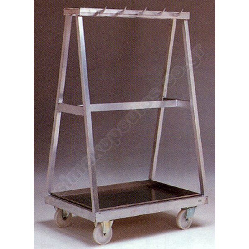 Ανοξείδωτο καρότσι μεταφοράς κρεάτων "γαϊδάρα" με τάσι ανοξείδωτο το οποίο αφαιρείται και πλένετε και με τέσσερις περιστρεφόμενες ανοξείδωτες ρόδες.