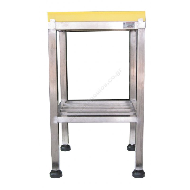 Ανοξείδωτος πάγκος επεξεργασίας κρέατος με πολυαιθυλένιο και σχάρα, ρυθμιζομένου ύψους με αντιολισθητικά πέλματα και πλάκα πολυαιθυλενίου πάχους 20mm - 30mm-50mm-100mm