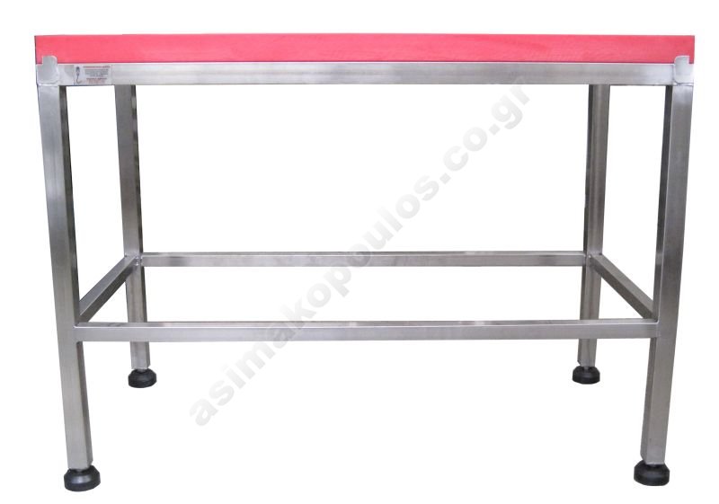 Ανοξείδωτος πάγκος επεξεργασίας κρέατος με πολυαιθυλένιο χωρίς σχάρα, ρυθμιζομένου ύψους με αντιολισθητικά πέλματα και πλάκα πολυαιθυλενίου πάχους 20mm - 30mm-50mm-100mm