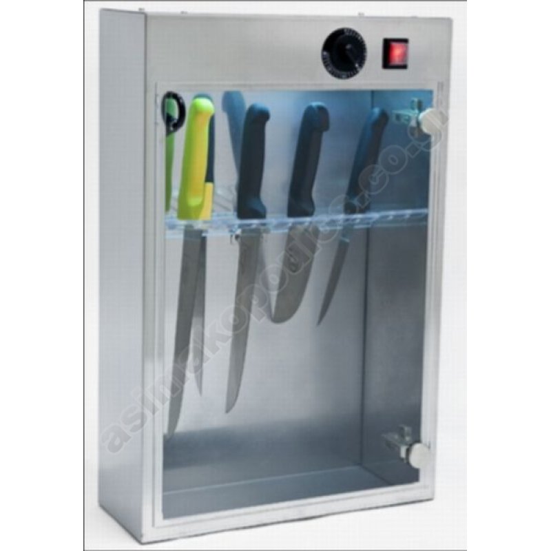 Αποστειρωτής μαχαιριών με υπεριώδεις ακτίνες 15 θέσεων, εξολοκλήρου ανοξείδωτος με ειδική πόρτα από πλεξιγκλάς η οποία προστατεύει από τις υπεριώδεις ακτίνες.
